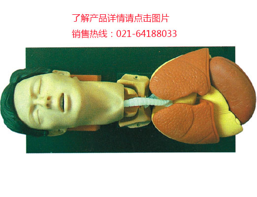 1、操作者站于模型頭側(cè),將頭后仰80°,使口、咽、氣管基本重疊一條線,將模型口張開;