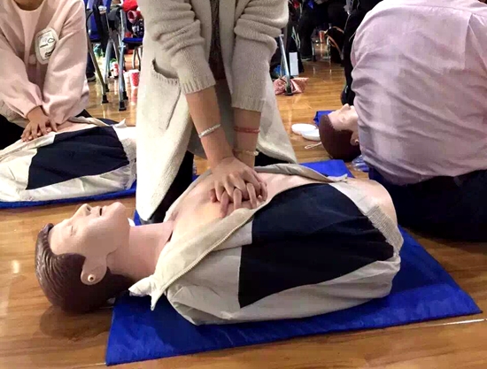 后,周醫師還讓現場的小學生親自上陣,在模擬人形上進行急救演練。通過周醫師及其助手的悉心指導,在場的同學和家長初步掌握了正確有效的心肺復蘇手法,具備了一定的急救能力。