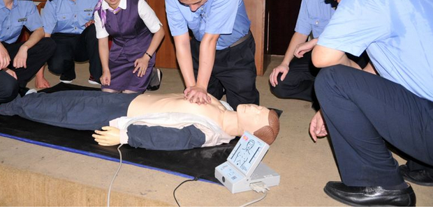 圖為:列車員操作心肺復蘇模擬人(圖片來源于網絡)