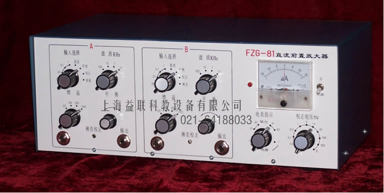 FAG-81型晶體管放大器是雙路直流低聲放大器。由于采用了進(jìn)口場效應(yīng)對管,使漂移和共模抑止比等指標(biāo)大為改進(jìn),噪聲也降到了10μV以下(100KHz帶寬時),適合于作為生物電前級放大器使用,亦可應(yīng)用于其它需要放大微弱信號的各種科研項目中。 放大倍數(shù):20,100,200,和1,000四檔 □共模抑止比:>30,000(<10KHz時) 漂移:<100μV/小時 □輸入線性范圍:500mV (20倍時) 噪聲:<10μVp-p(100KHz帶寬時) 100mV(100倍時) ------<5μVp-p(10KHz帶寬時) 50 mV(200倍時) ------<2μVp-p(100KHz帶寬時) 10 mV(1,000倍時) 高頻濾波:100,10,1,0.1(KHz) □輸入阻抗:電阻1M ?,電容<100pF 低頻濾波:DC,AC(1,0.1,0.01,0.001S) |