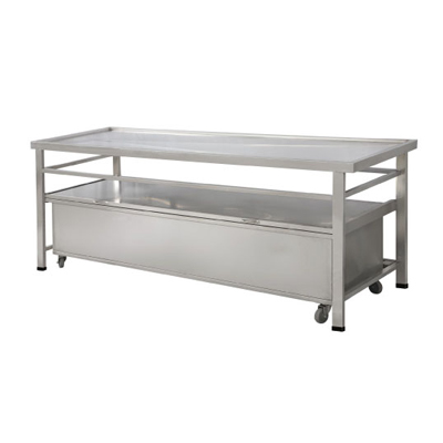 該解剖臺加裝導(dǎo)軌及可存放兩具尸體的大儲存箱,該箱體帶有四個靜音腳輪,不占用空間,可節(jié)省實驗室的有效使用面積。