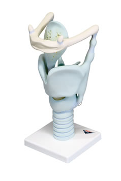 會厭、聲帶和杓狀軟骨均靈活安裝。置于基架上。
