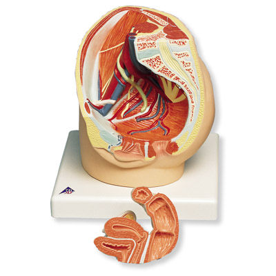 除了女性骨盆所有重要結構,這款中切模型非常詳細地展示了腹腔和骨盆肌,前半女性生殖器與膀胱和直腸可拆卸。置于基板上。