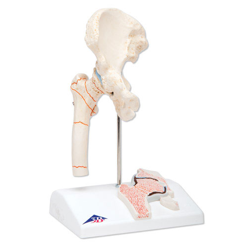 這款模型是為諸如手術前給病人解釋病理而設計的。它以實物的一半大小表現了老年人的右側髖關節。另外在基架上還裝有一片股骨頸的正面斷面。此模型展示了臨床常見的大腿骨折和典型的髖關節磨損狀況(髖關節病)。