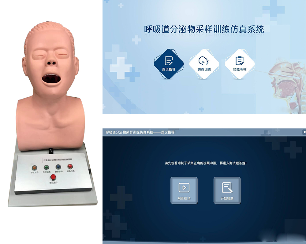 1.理論教學(xué)模塊,主要通過視頻教學(xué)的方式,系統(tǒng)的教授呼吸道分泌物采集的操作步驟,要點,應(yīng)急處理等知識;